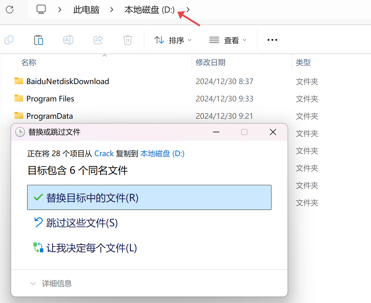 粘贴到SolidWorks2025安装路径所在的盘,选择替换目标中的文件:
